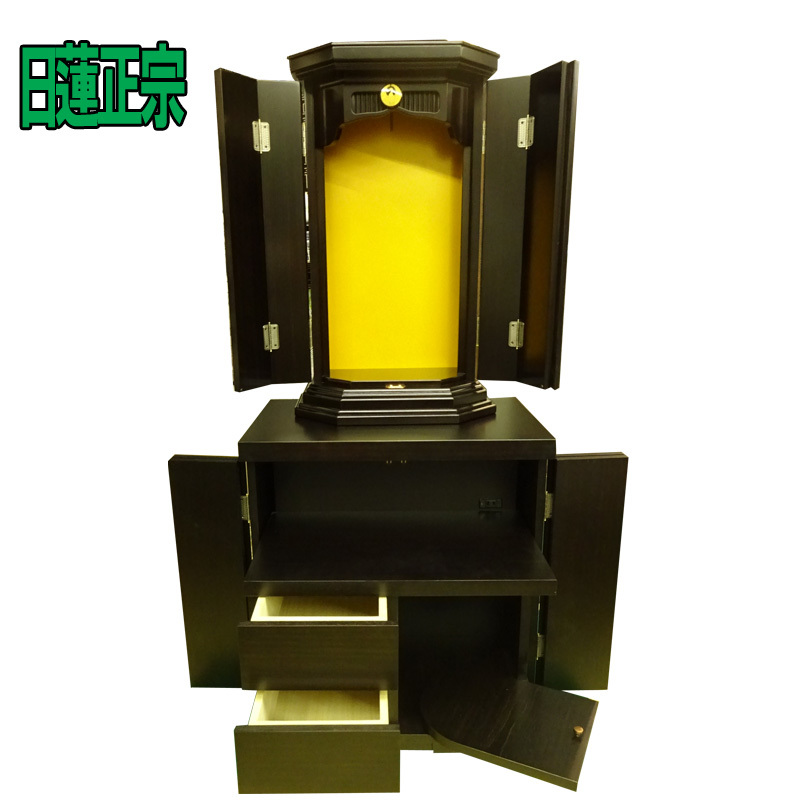 - 送料無料★新品★日蓮正宗用 仏壇132cm★【黒檀調 厨子】鶴丸紋章 経机収納型★厨子タイプ 正宗 大奉仕 特価
