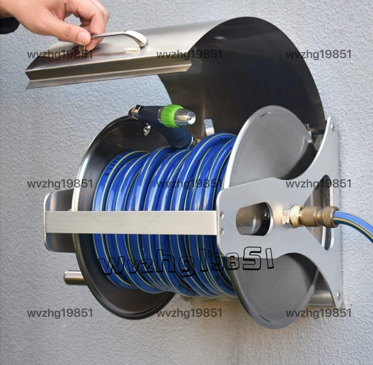 - ホースリール 散水ホース ステンレス鋼 ガーデン ホースリールスタンド 屋外金属ホースホルダーボックス ポータブルホースハンガ