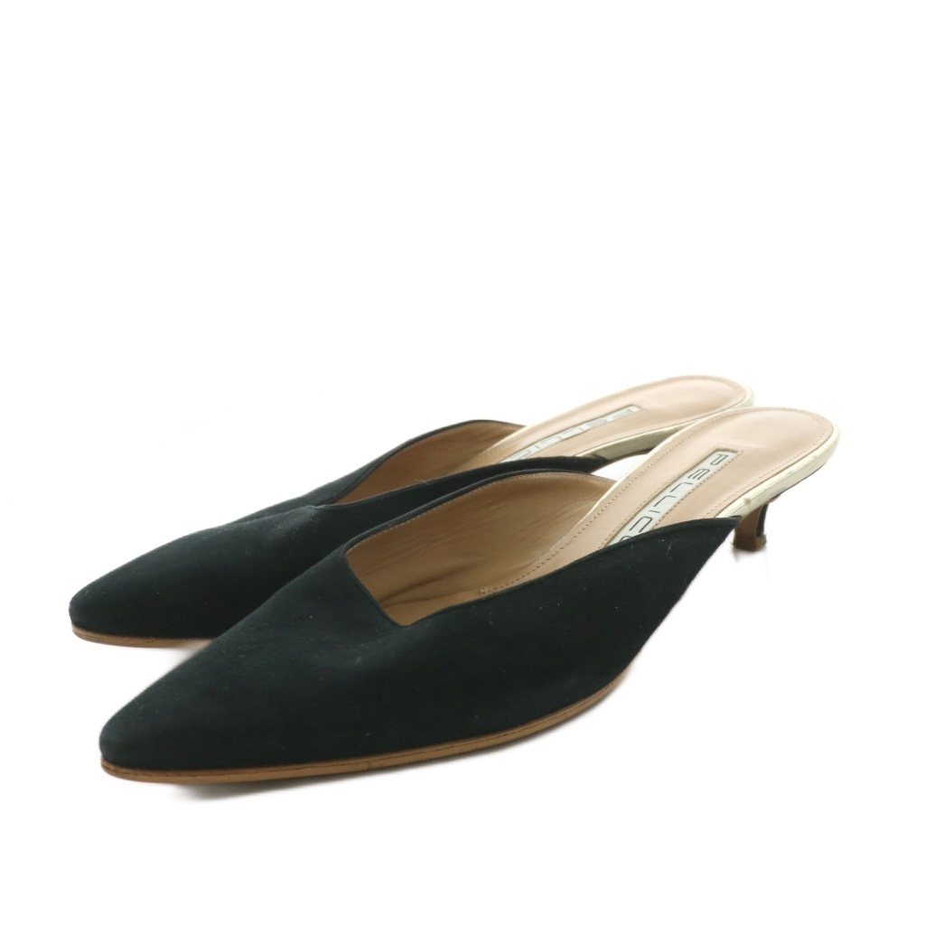 > ペリーコ PELLICO ミュール サンダル シューズ ポインテッドトゥ スエード ローヒール 38 ブラック /NQ レディース