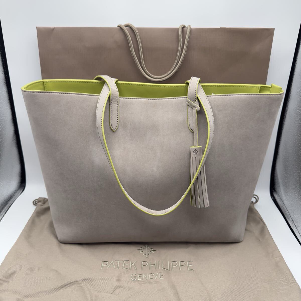> 未使用品 パテックフィリップ トートバッグ ベージュ スエード レザー メンズ レディース カバン ノベルティー 腕時計 時計ケース