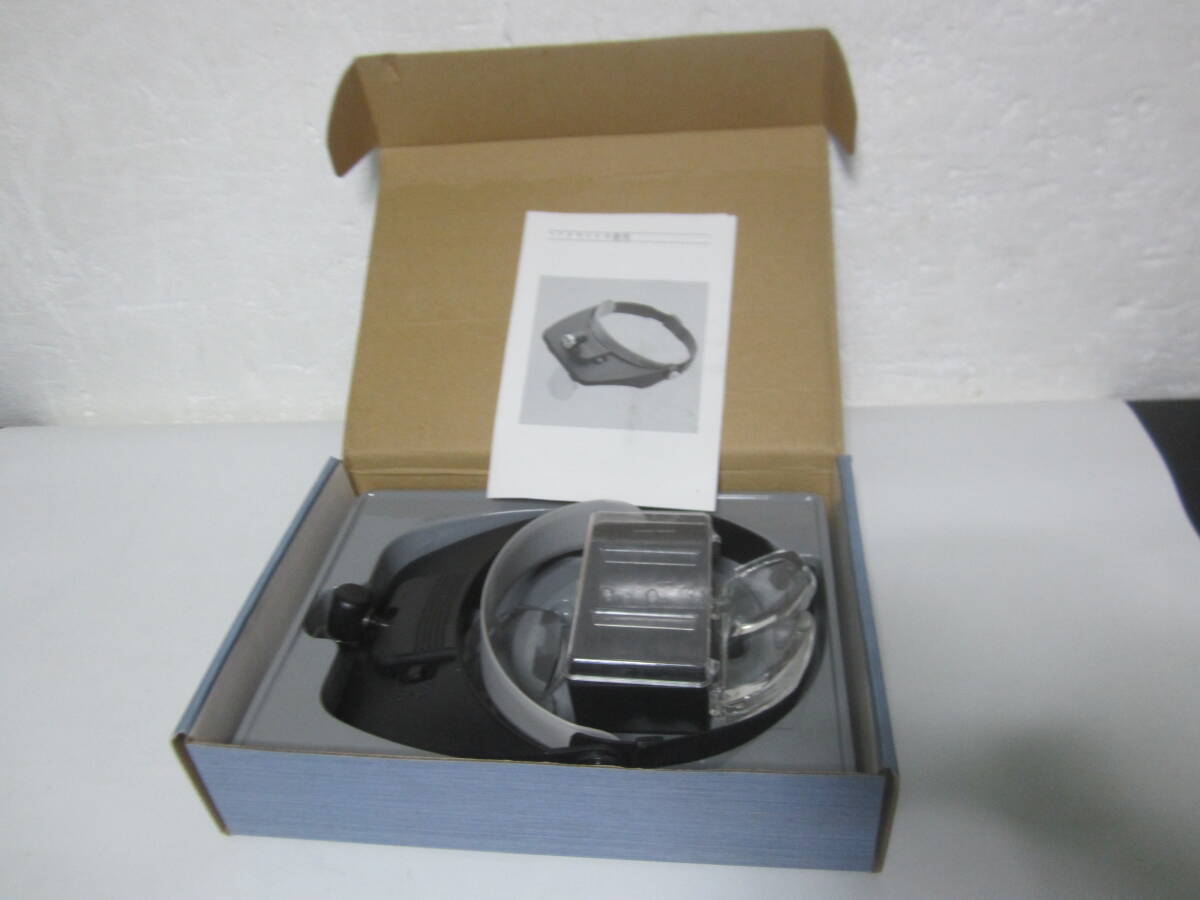 - バイザー型ライト付きヘッドルーペ レンズ4枚付き 倍率4通り 未使用品