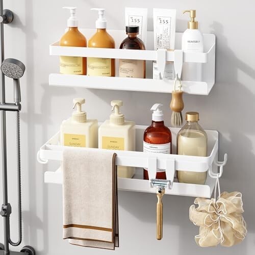- ■送料無料■浴室用ラック マグネット お風呂 ホワイト 錆びない バスルーム シャンプー 洗面所 収納 水切り 磁石壁掛け (ホワ