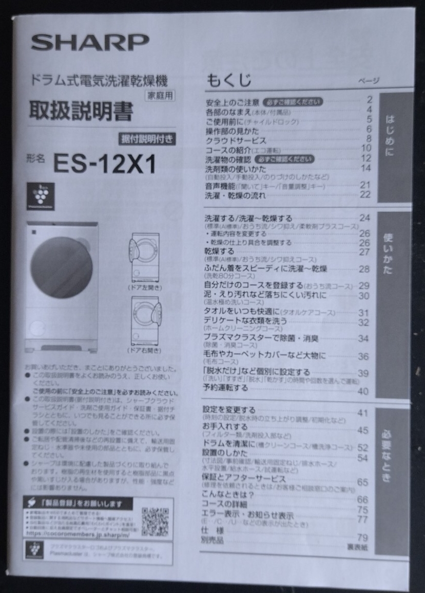 - SHARPドラム式洗濯乾燥機ES‐12X1 取扱説明書