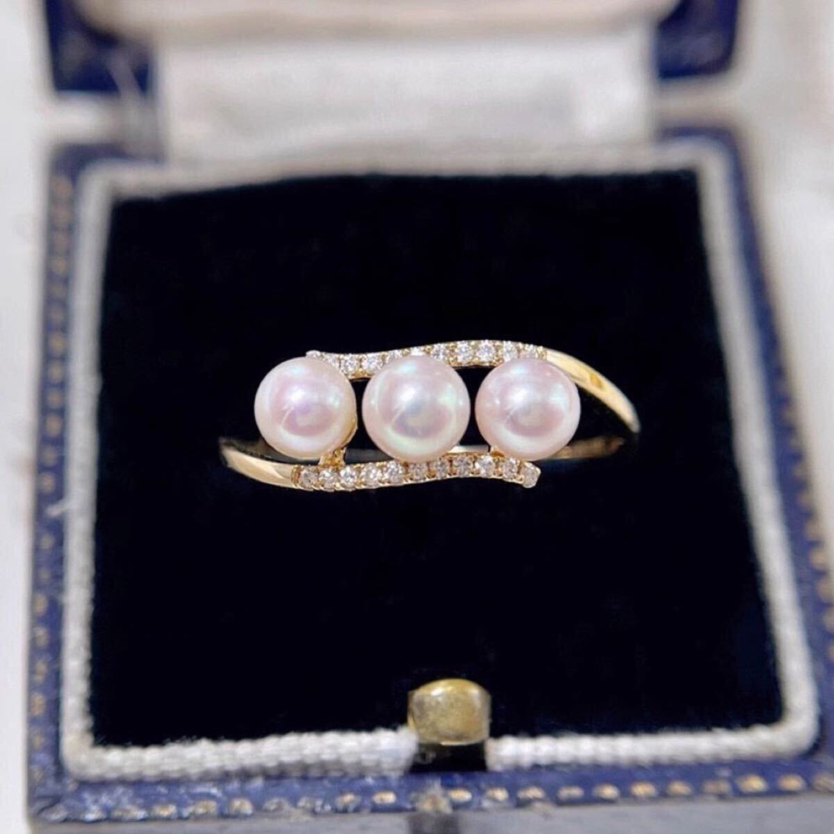 - 照り良く ベビーアコヤ真珠 フリーサイズリング 調整可能 ホワイト CZ付き