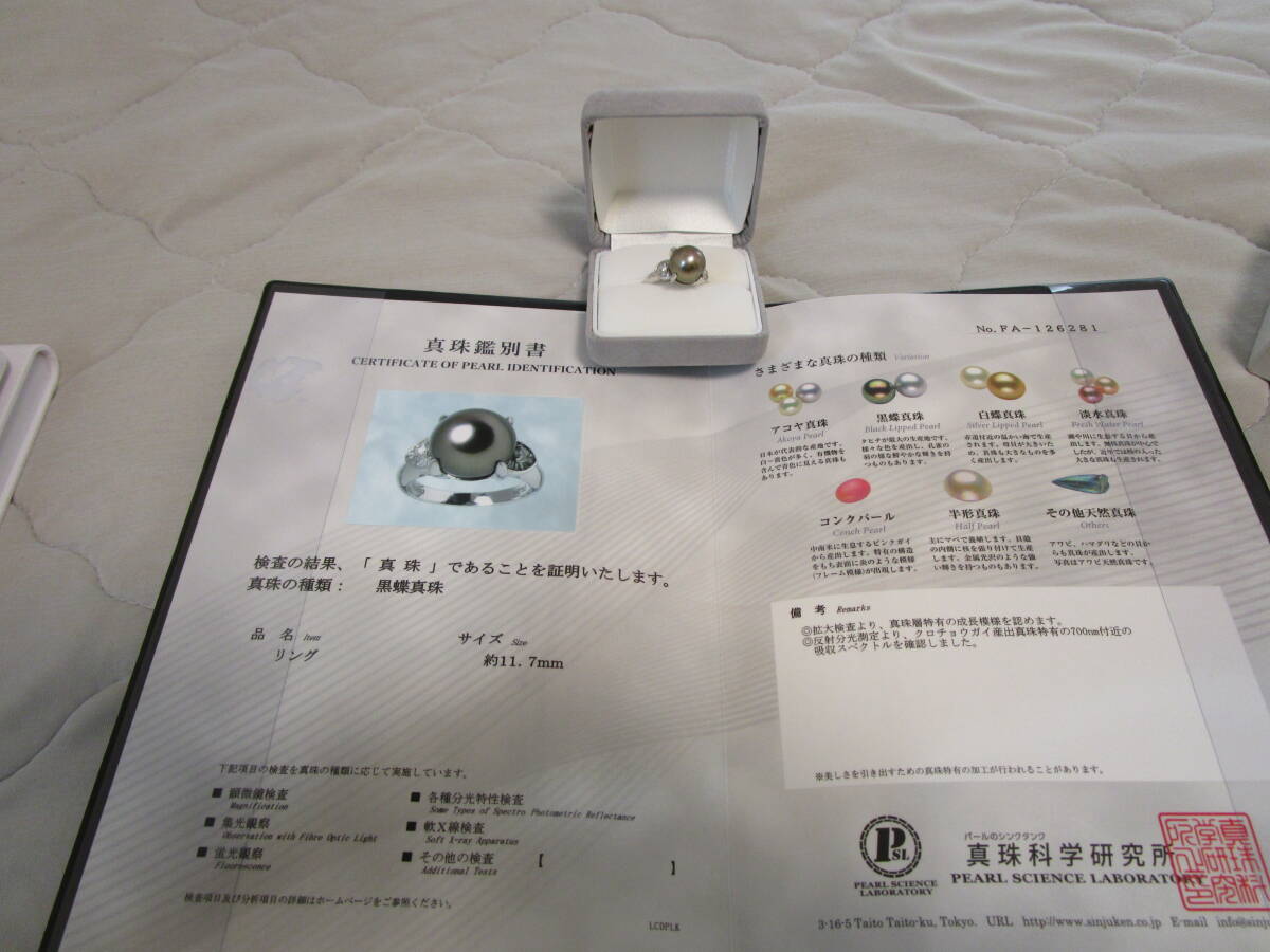 - Pt900 黒蝶真珠 11.7mm ダイヤリング D0.34ct 9g