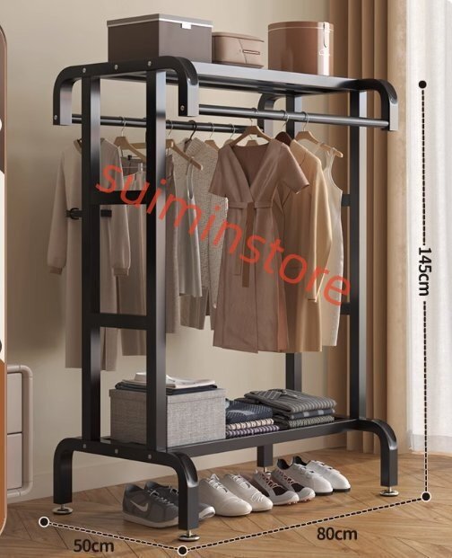- ハンガーラック 頑丈 大容量 衣類収納 洋服ラック 洋服掛け コートハンガー 帽子らっく付き ダブルハンギングロッド付き 145cm