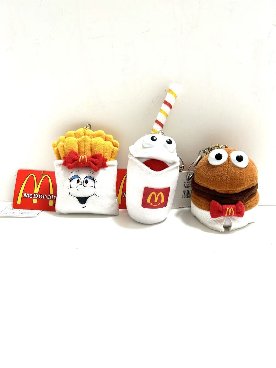 > 希少!マクドナルド ハンバーガー ポテト ドリンク シェイク ぬいぐるみ キーホルダー 3点 セット マック ミールトイ ディスプレイ