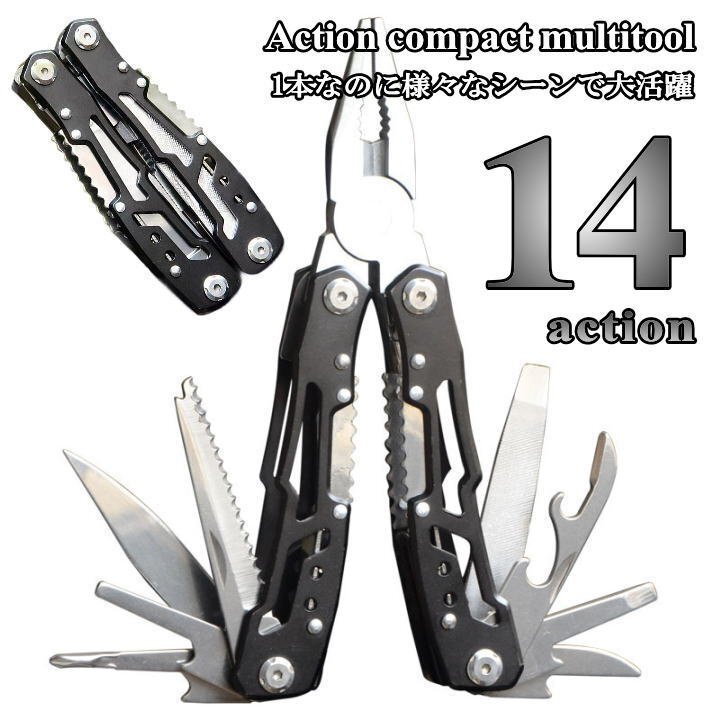 > 【万能で役立つ!男ツール】 マルチツール ドライバー 多機能 工具 日曜大工 DIY 防災 アウトドア 用品 キャンプ 7987170 ブラック 新品