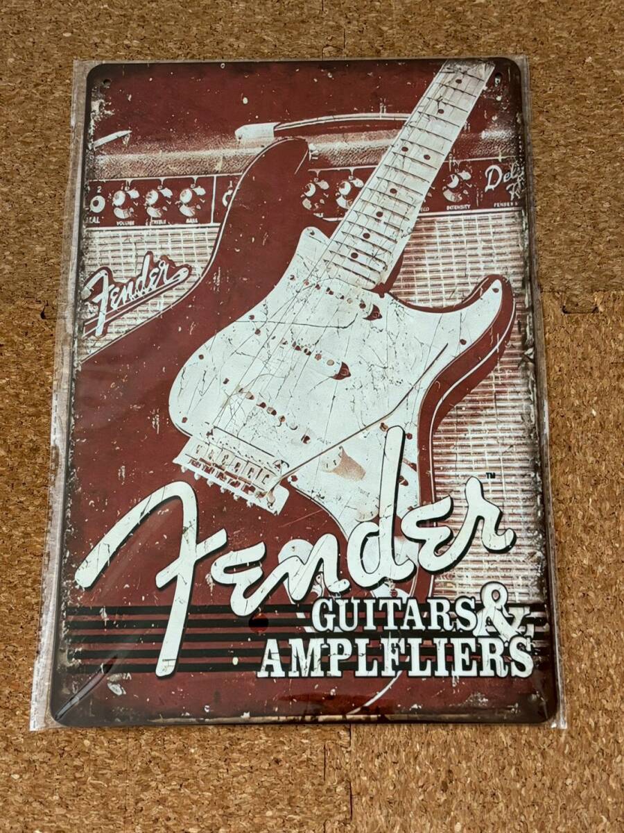 > Fender フェンダー エレキギター ブリキ看板 ウォールデコ レトロ ビンテージ風 アンティーク調 アメリカン雑貨 メタルサインプレート