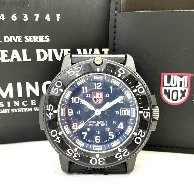 - 仙18【訳あり】LUMINOX SERIES 3000/3900 腕時計 クォーツ デイト アナログ ルミノックス QZ メンズ 黒文字盤 箱付き ※ベルト破損