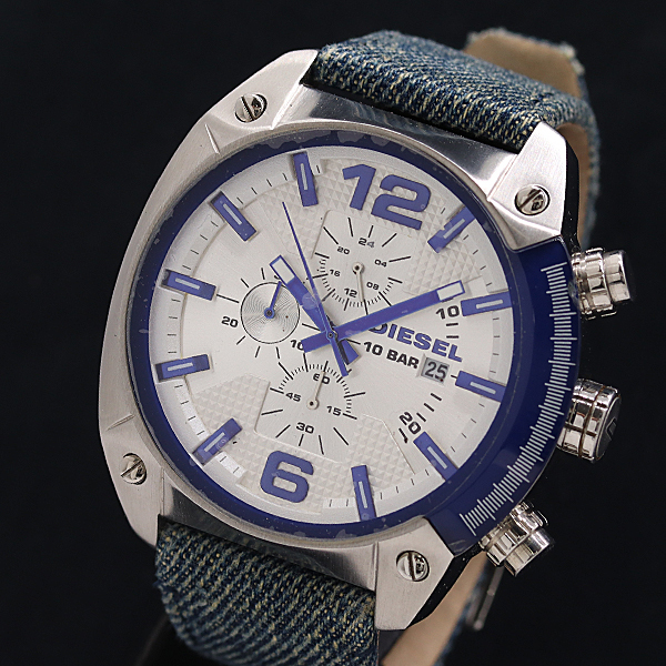 - 1円 稼働 良品 箱付 ディーゼル オーバーフロー DZ-4480 861501 SS QZ クロノグラフ シルバー文字盤 メンズ腕時計 7615100 3JWY KMT