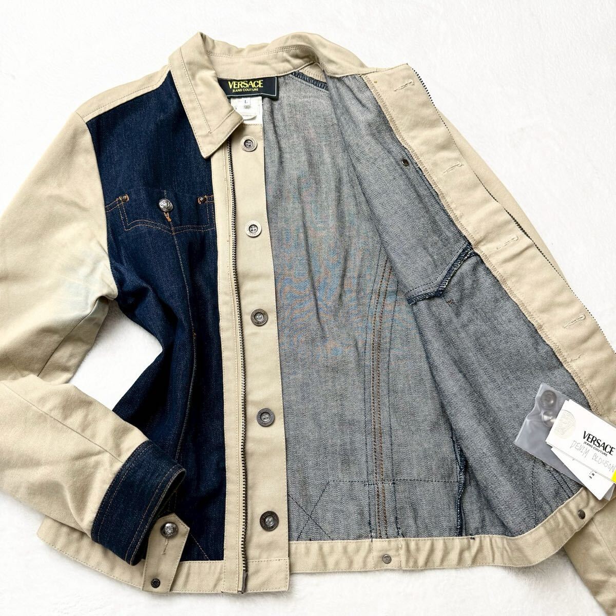 > 2851 メデューサボタン◎希少Lサイズ ヴェルサーチ ジーンズ VERSACE JEANS デニムジャケット Gジャン 切替 ブルゾン メンズ インディゴ