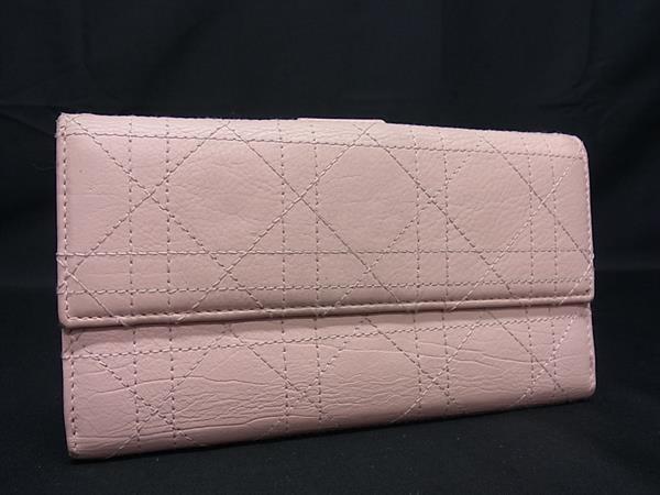 > 1円 ChristianDior クリスチャンディオール カナージュ レザー 二つ折り 長財布 ウォレット 小銭入れ 札入れ ピンクベージュ系 FQ6689