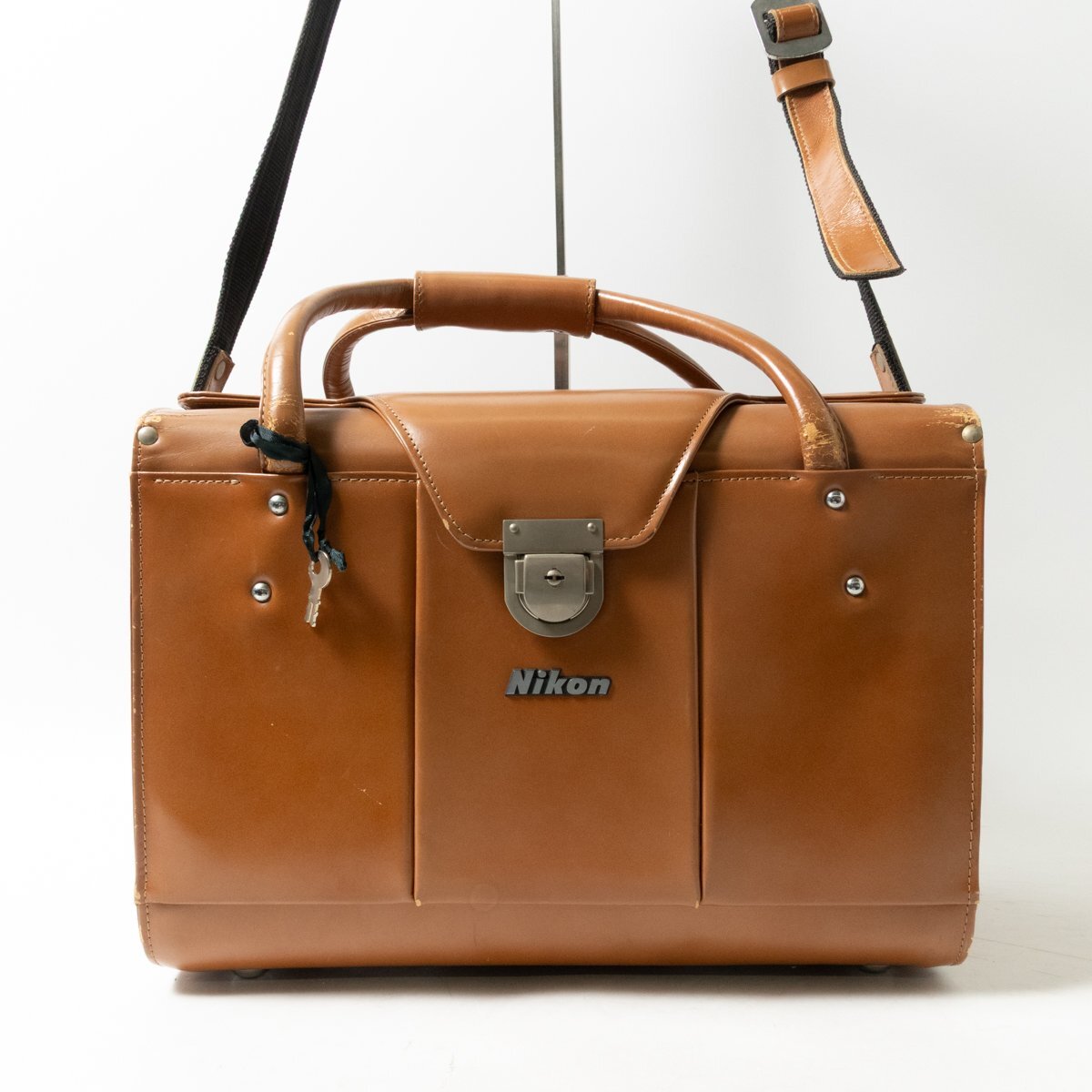 - 【1円スタート】Nikon ニコン 純正 カメラバッグ ガゼットケース レザー 本革 ブラウン ユニセックス 斜めがけ 手さげ bag 鞄 かばん