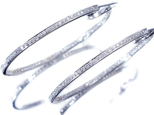 - 1円~【ジュエリー極】ギラギラ輝くビックフープ!極上天然ダイヤモンド1.66ct 超高級K18WGフープピアス a3537vri【送料無料】
