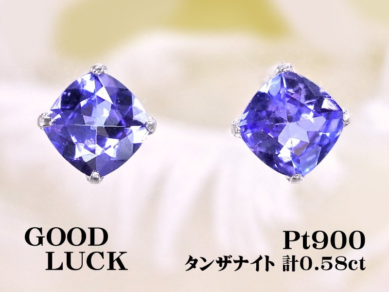 - 【新品・未使用】1円~最落無 天然タンザナイト 計0.58ct,プラチナ アンティーククッションカット 光沢ある輝き タンザナイト ピアス