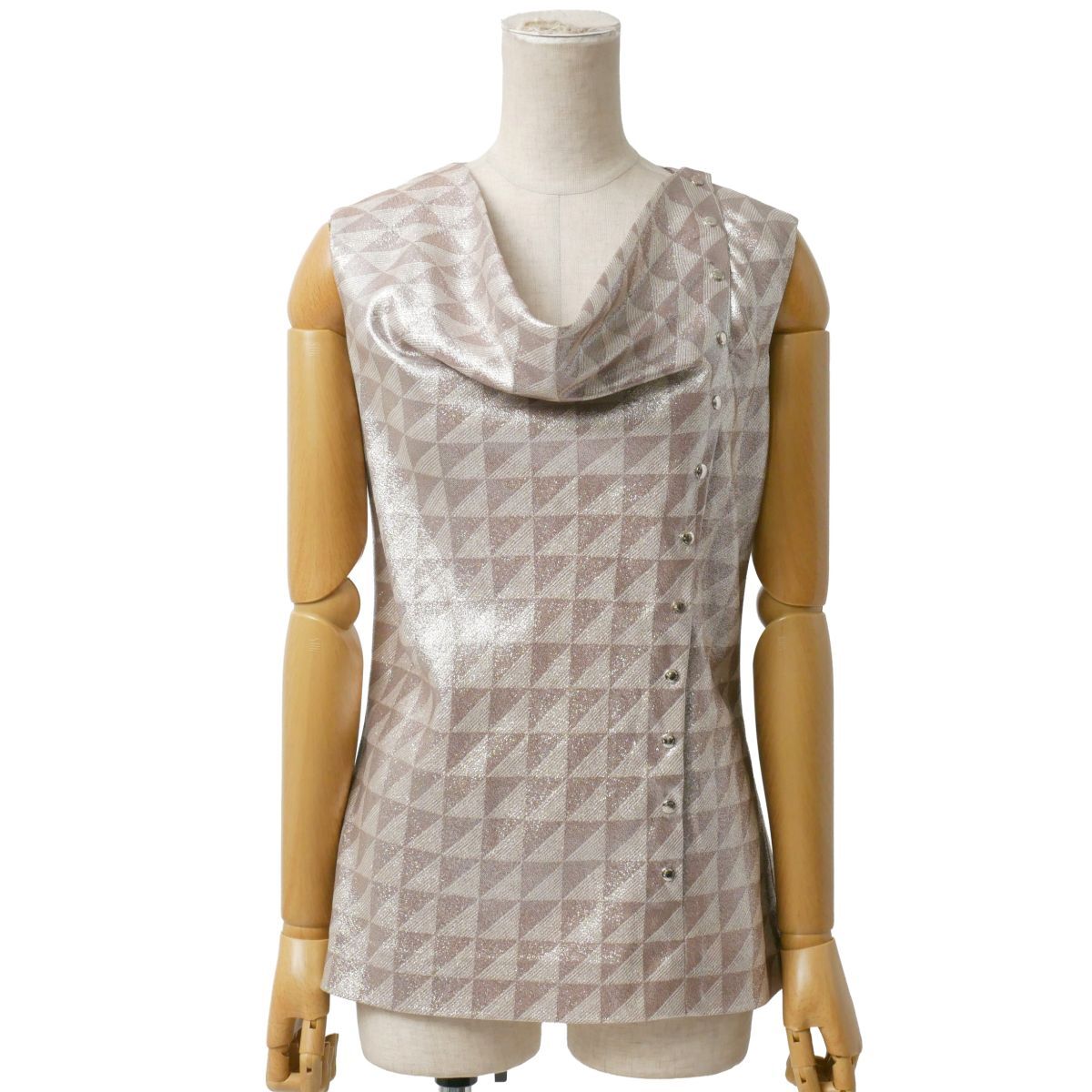 - MI6843☆ルイヴィトン LOUIS VUITTON ラメ糸 メタリック ノースリーブトップス プルオーバー スナップボタン 総柄 シルバー系 サイズ38