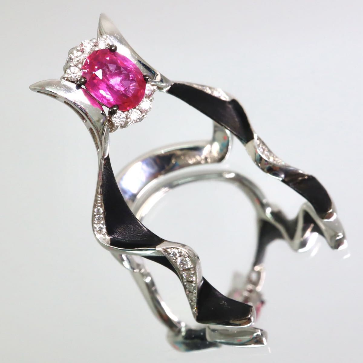 - 注目!Pt900!【KARATI(カラッチ)】R1.008/D0.21ct!ソ付◆天然ルビー/ダイヤモンドリング◆A 約9.3g 約14号 #14 diamond 指輪 FA1/FA2 W553