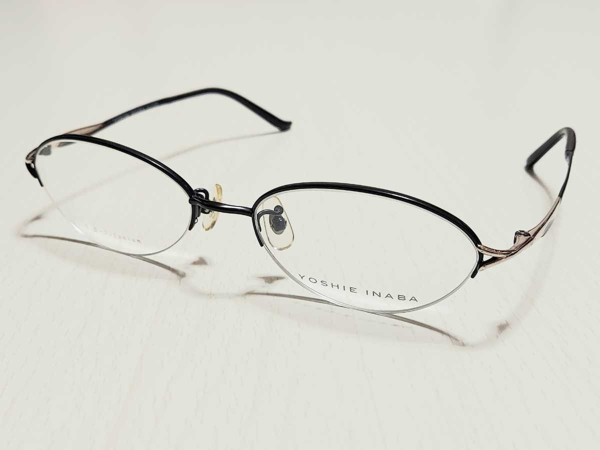 - 新品 YOSHIE INABA ヨシエイナバ メガネ 眼鏡 高級感 オシャレ 上品 ハーフリム チタン 軽い 黒ぶち ブラック