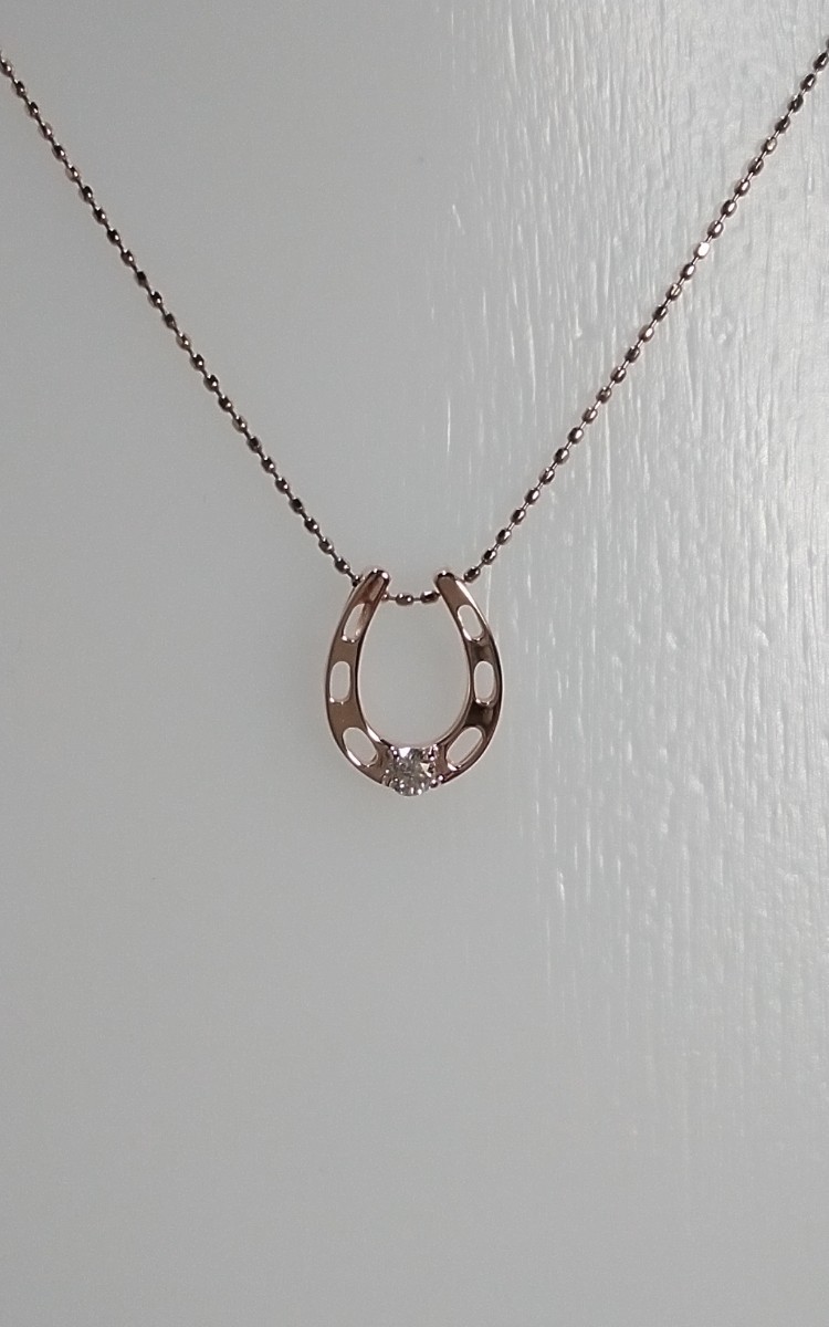 - K10(PG)ダイヤペンダントネックレス!0.07ct.。馬蹄型。
