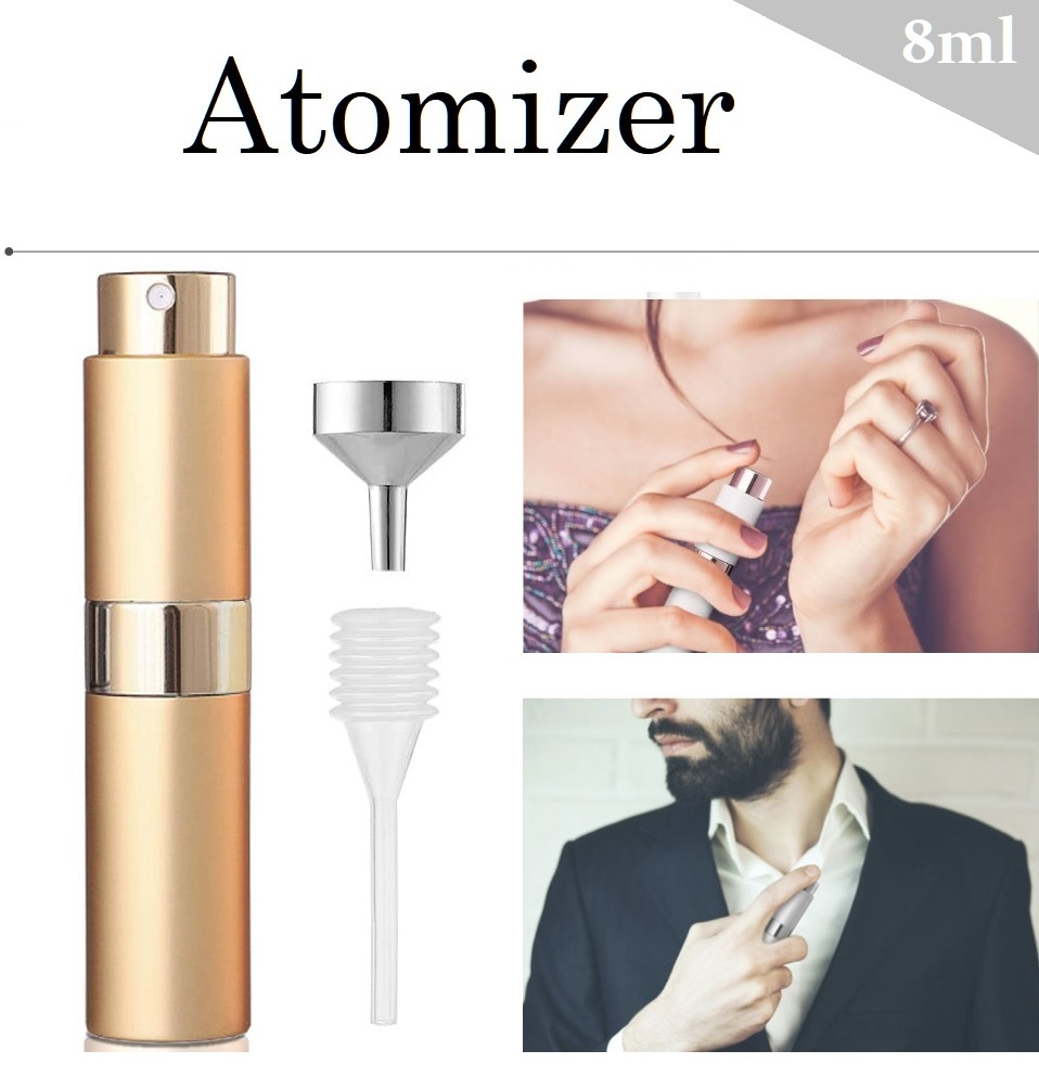 - 【8ml】アトマイザー 香水 アドマイザー スプレーボトル 詰替え 香水入れ 付属品付き 持ち運び GOLD ゴールド