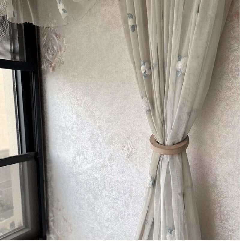- 2個セット ウッドリング カーテンホルダー マグネット式 10cm タッセル 丸ハンガー おしゃれ かわいい ナチュラル