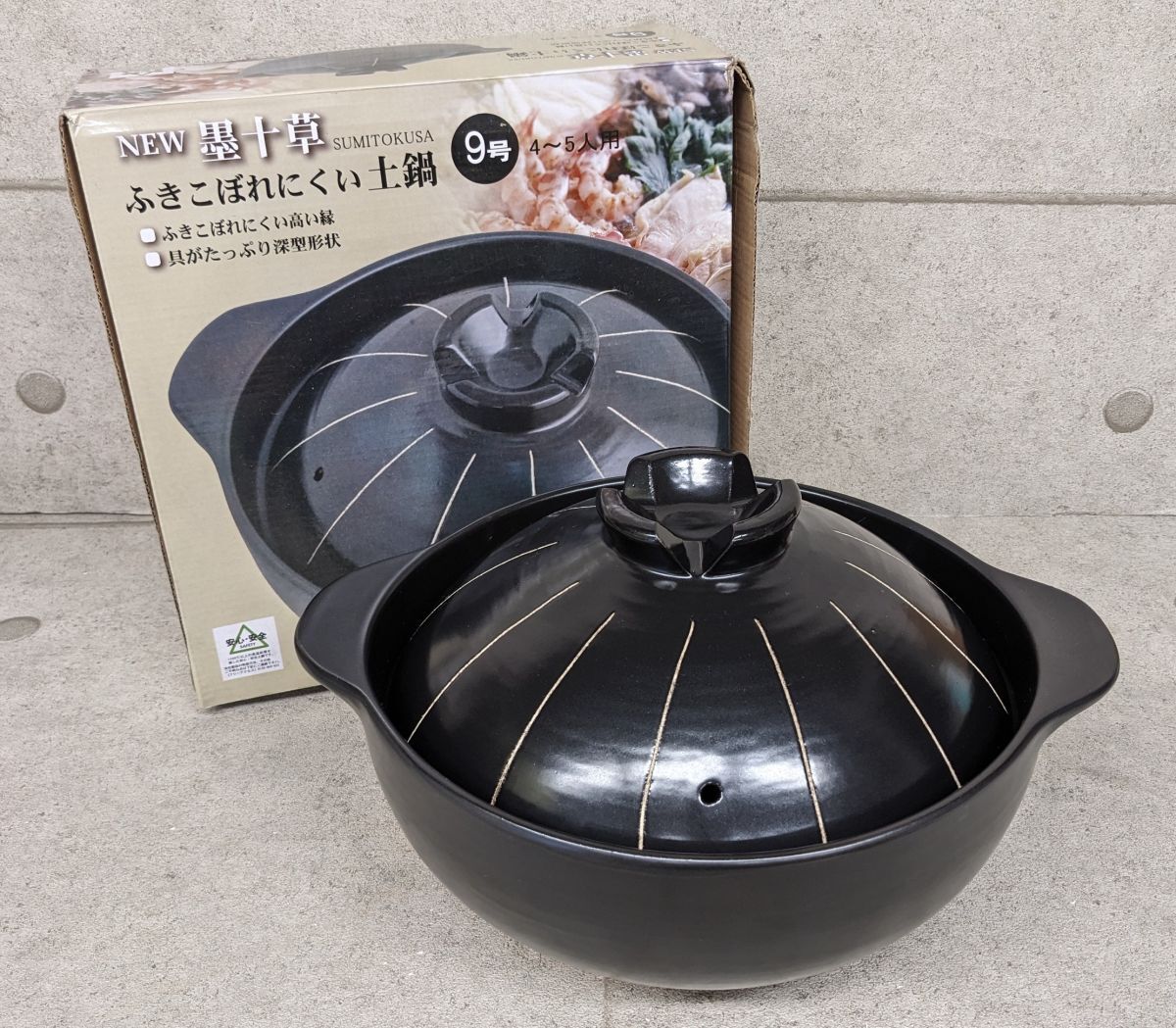 - hh647■黒十草 ふきこぼれにくい土鍋 9号 4~5人用 両手鍋 調理器具 ホームパーティー 土鍋ご飯 スタイリッシュ/100