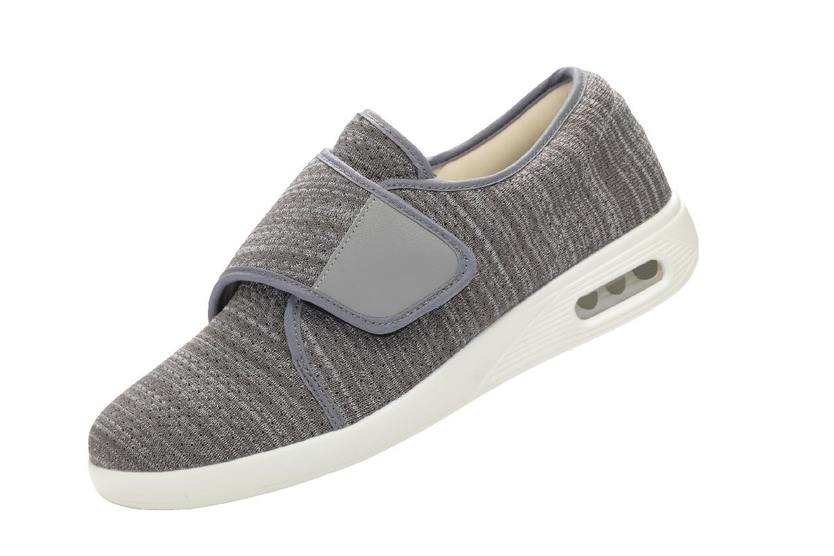 [滑り止め-つまづき&転倒防止]屋内外兼用の耐摩耗性・滑り止め粒子入りソールが滑りを防止。衝撃吸収素材で足底への負荷を軽減し、リハビリ歩行や日常移動時の「転倒リスク低減」に貢献する介護靴です。同時に、取り外し可能な2組のエアミッドソールとメモリーフォームインソールが組み合わさり、さらなる快適性を提供します。さらに、柔らかなパッド入りヒールが足への摩擦を軽減。履いた瞬間に極上の快適さを感じられます