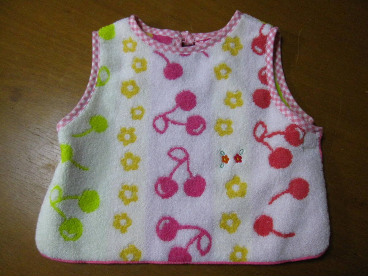 - 手作り ベビーエプロン タオル地 花 さくらんぼ 刺繍 子供 男女 兼用 男児 女児 ハンドメイド 赤ちゃん 綿 春 夏 可愛い 格安 出産 祝