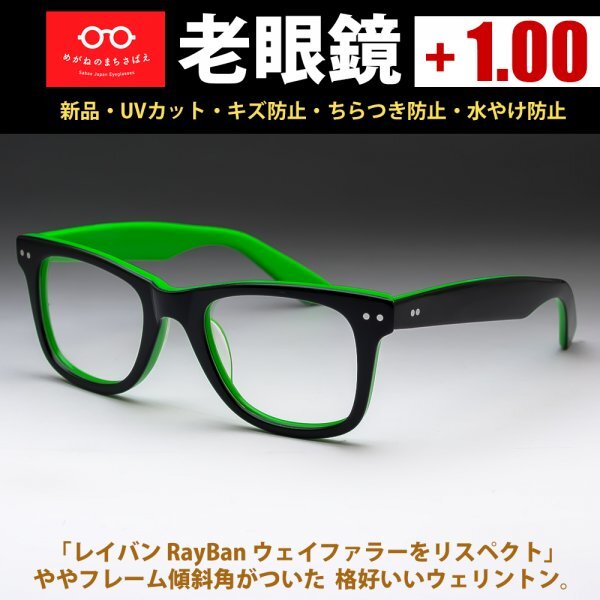 - 老眼鏡 +1.00 鯖江メガネ ウェリントン ウェイファラー仕様 視力補正 薄型レンズ付き シニアグラス 読書用メガネ 度付き可 AK101新品