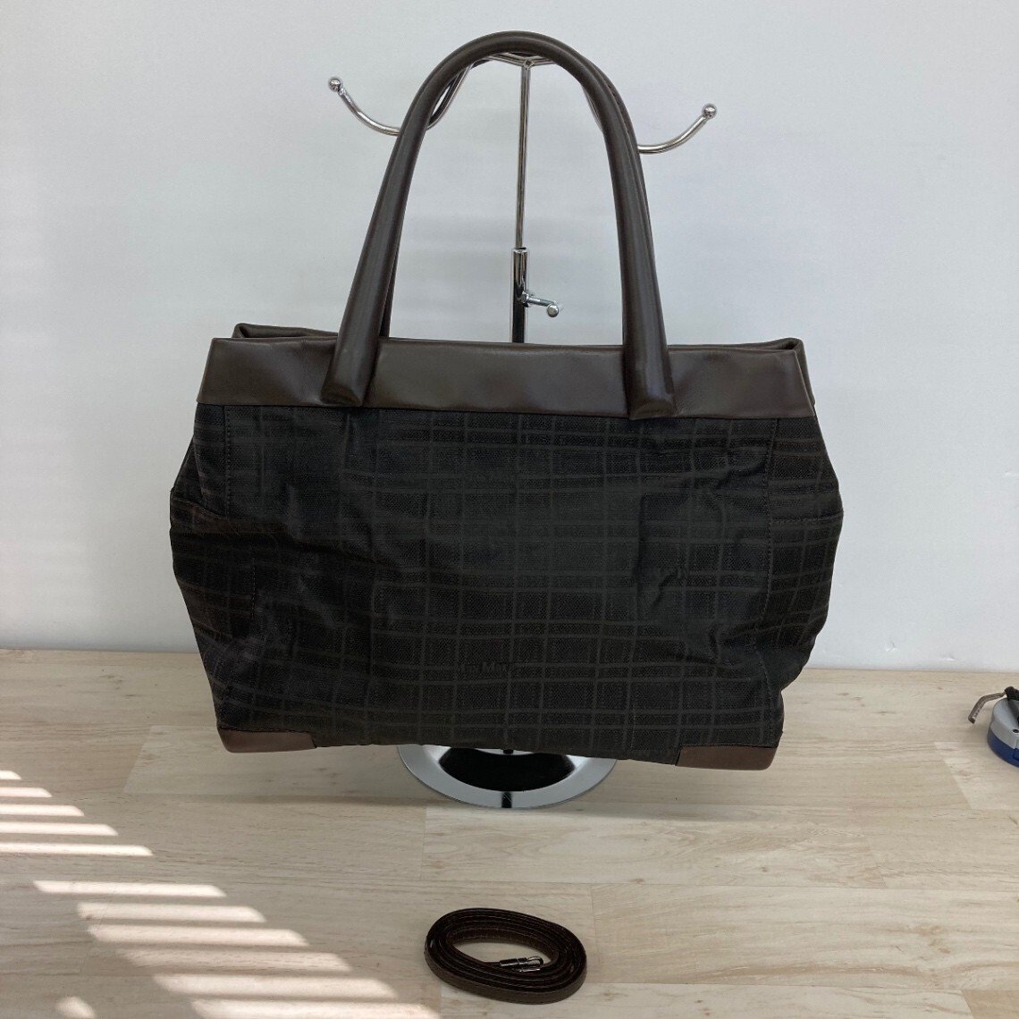 - MaxMara/マックスマーラ トートバッグ ダークブラウン 格子柄 キャンバス×レザー ショルダーストラップ付 イタリア製[OX02011]