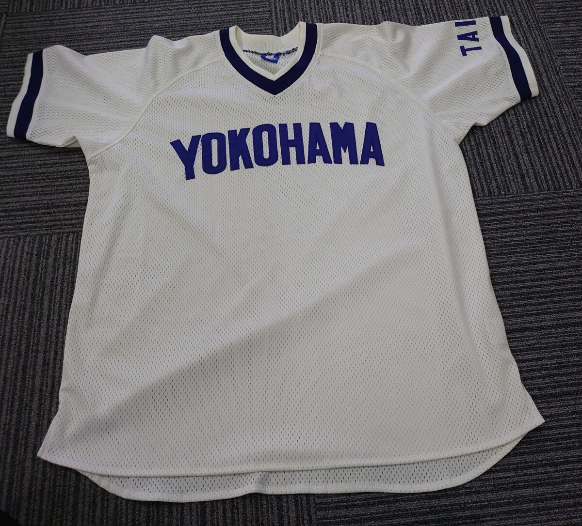 > 横浜大洋ホエールズ 復刻 ユニフォーム メンズL アイボリー×ネイビー系