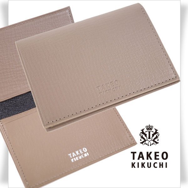 - 新品1円~★定価1.5万 TAKEO KIKUCHI タケオキクチ 箱付き やぎ革レザー 名刺入れ カード入れ 本革 ベージュ クラーク 正規店本物◆9180◆