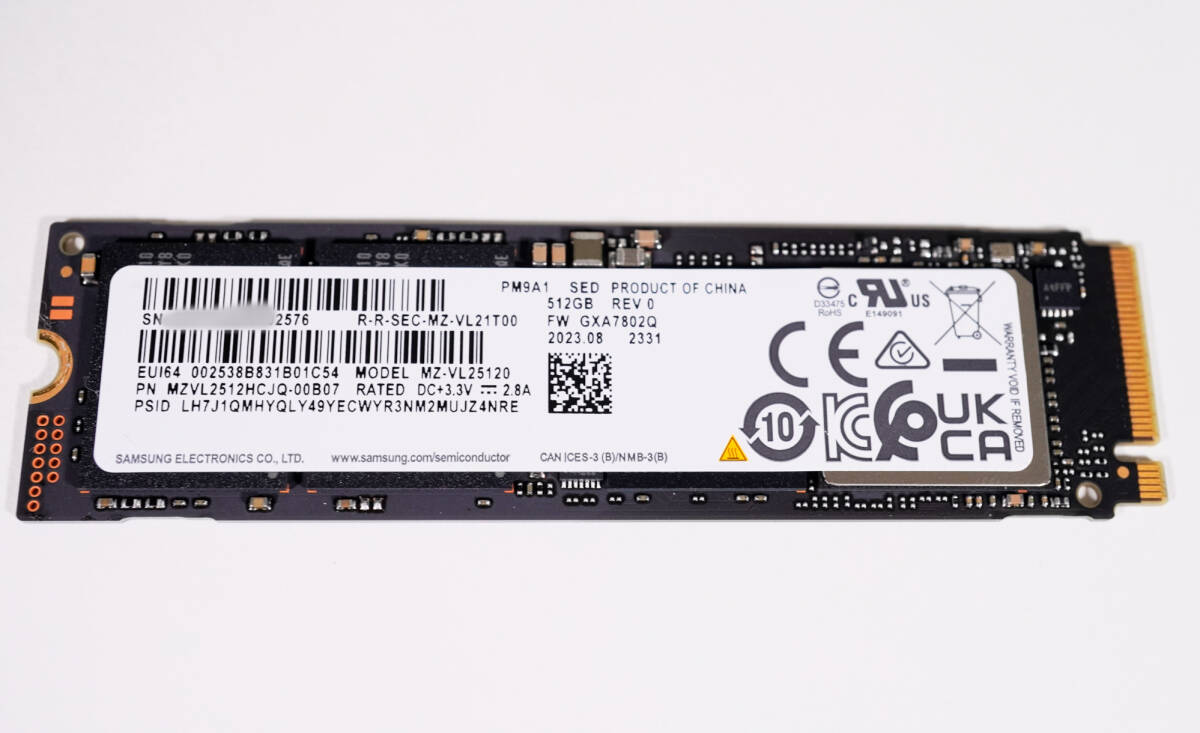- 【1円スタート・使用時間64時間・動作確認済・即納】Samsung PM9A1 512GB NVMe M.2 SSD MZVL2512HCJQ PCIe Gen4 正常品