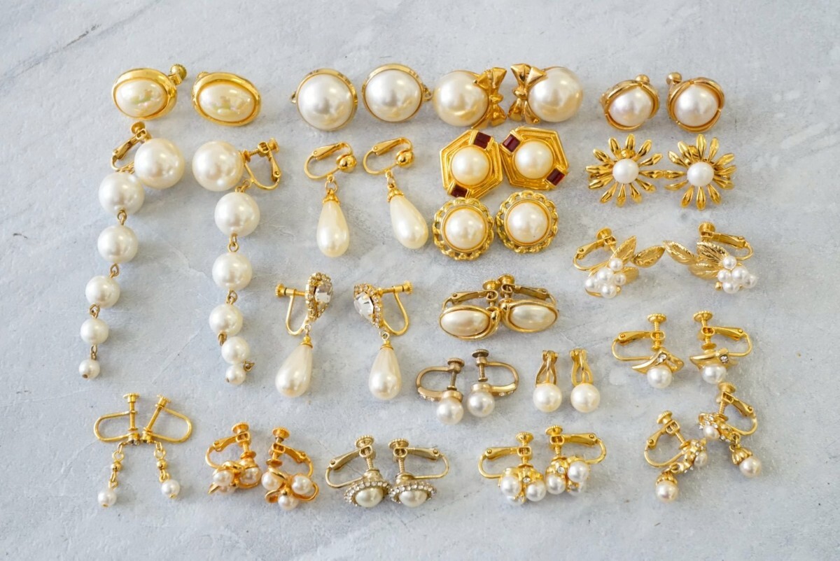 > C447 パール風 ゴールドカラー 海外製など イヤリング 両耳揃い 20点セット ヴィンテージ アクセサリー 大量 まとめて おまとめ 装飾品
