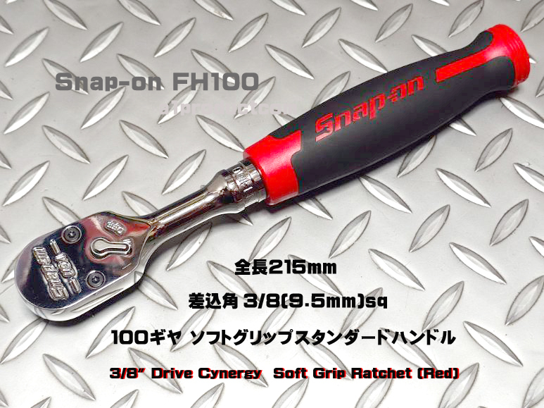 > スナップオン Snap-on 差込角3/8(9.5mm) 100Gear ソフトグリップスタンダードラチェット FH100 (Red) 新品
