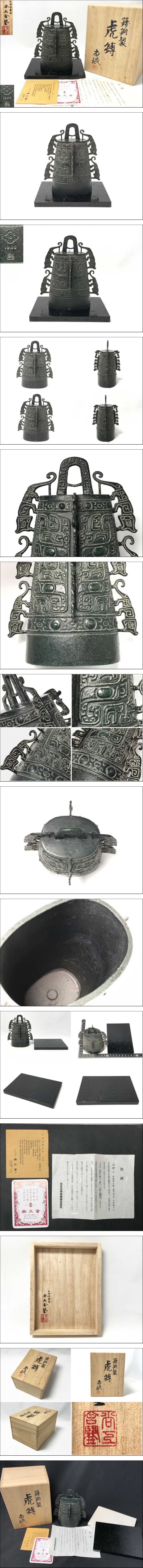 > ◆未使用!虎はく 小林尚珉 饕餮文 鐘 銅鐸 銅製品 鋳銅製 尚工舎 中国古銅器 置物 飾り物 鐘 1986 金属工芸 伝統工芸 栞・共箱付き