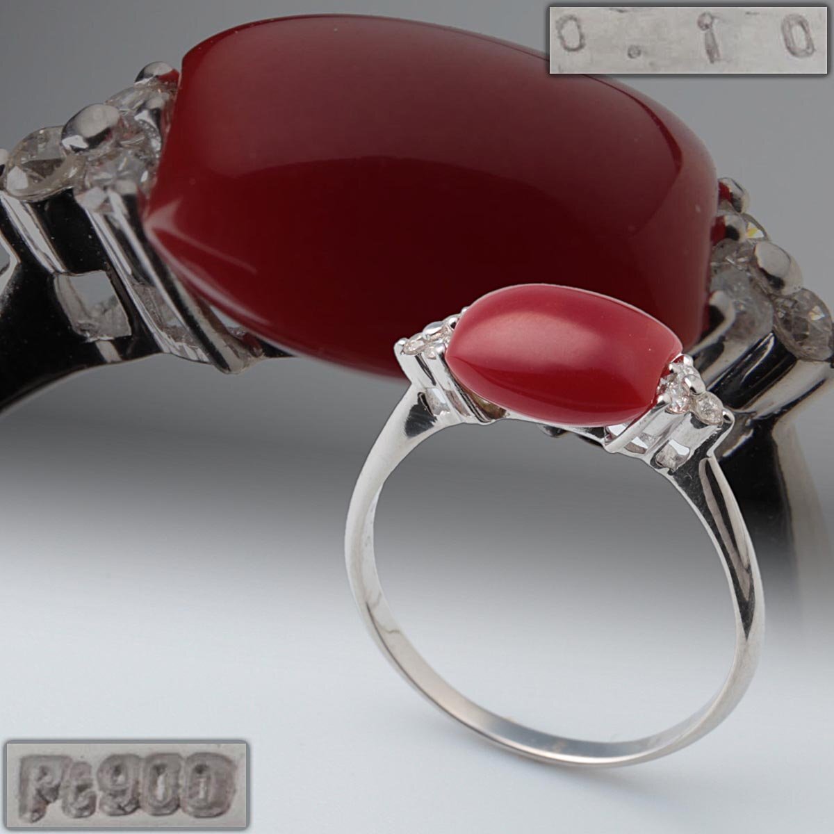 > FG376 Pt900 赤珊瑚 サンゴ / ダイヤモンド 0.10ct プラチナ 指輪 約17号 / 重3.29g・プラチナリング 装飾具 レディース アクセサリー