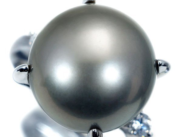 - 1円~【ジュエリー極】希少カラー!大珠南洋シルバーブラックパール13.3mm&ダイヤモンド0.15ct 高級Pt900リング a3536gk【送料無料】