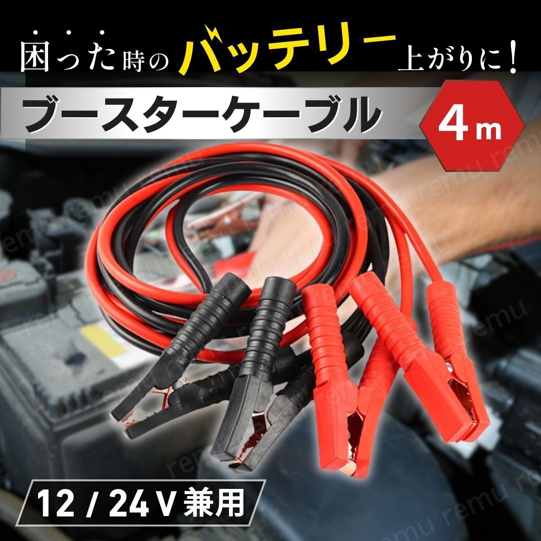 - ブースターケーブル ロングケーブル バッテリーケーブル 車 4m 12v 24v 緊急 自動車 バッテリー 絶縁カバー 普通車 メンテナンス 軽 兼用