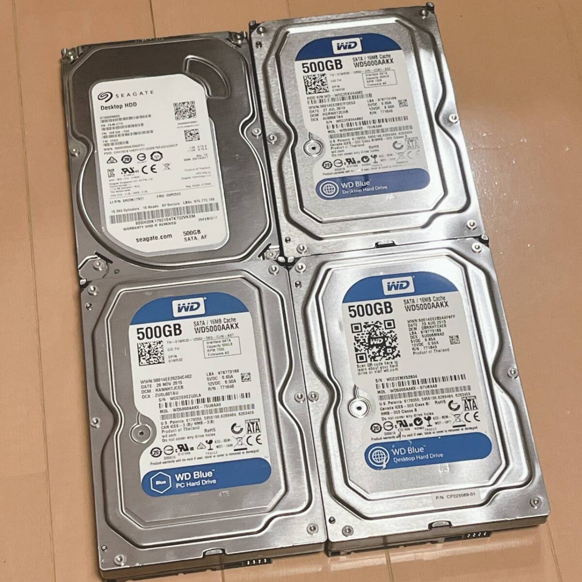 - ++送料無料++1円スタート++WD Seagate 500GB HDD 4台セット SATA デスクトップ用 WD5000AAKX 混在 動作確認済 024