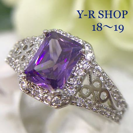 - 18号19号★アメジストとホワイトトパーズのクラシカルデザインリング★レディース指輪シルバー 925 刻印カラーストーン 新品宝石cz ring