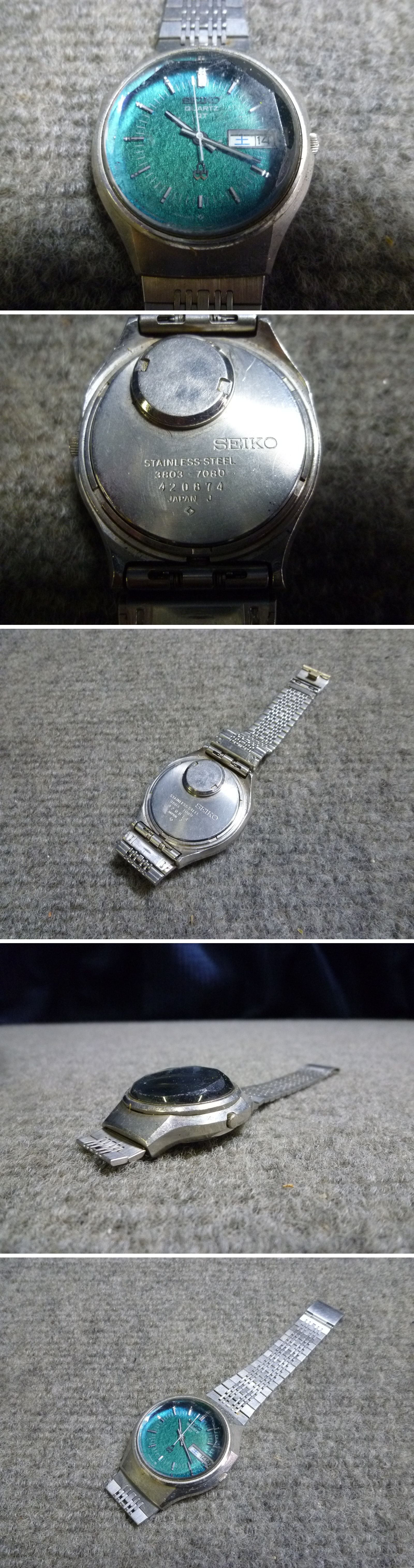 > ▲ SEIKO セイコー 3803-7080 QT QUARTZ クォーツ カットガラス BLUE 青 ブルー メンズ 腕時計 ▲