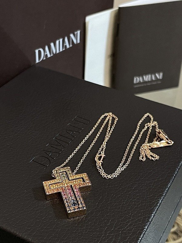 > ★綺麗!【ダミアーニ DAMIANI 20084310 ベルエポック ネックレス 750 K18 ピンクゴールド クロス レインボー サファイヤ】YN00210