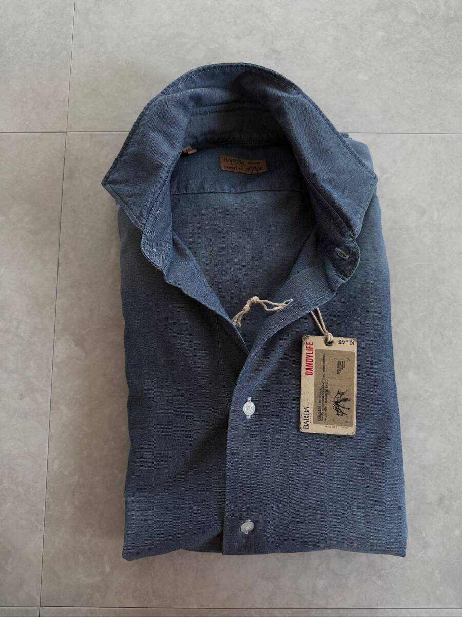 - 5817】新品4.4万【BARBA DANDY LIFE / バルバ ダンディライフ 秋冬 41 インディゴシャツ カッタウエイカラー】ウォッシュドインディゴ