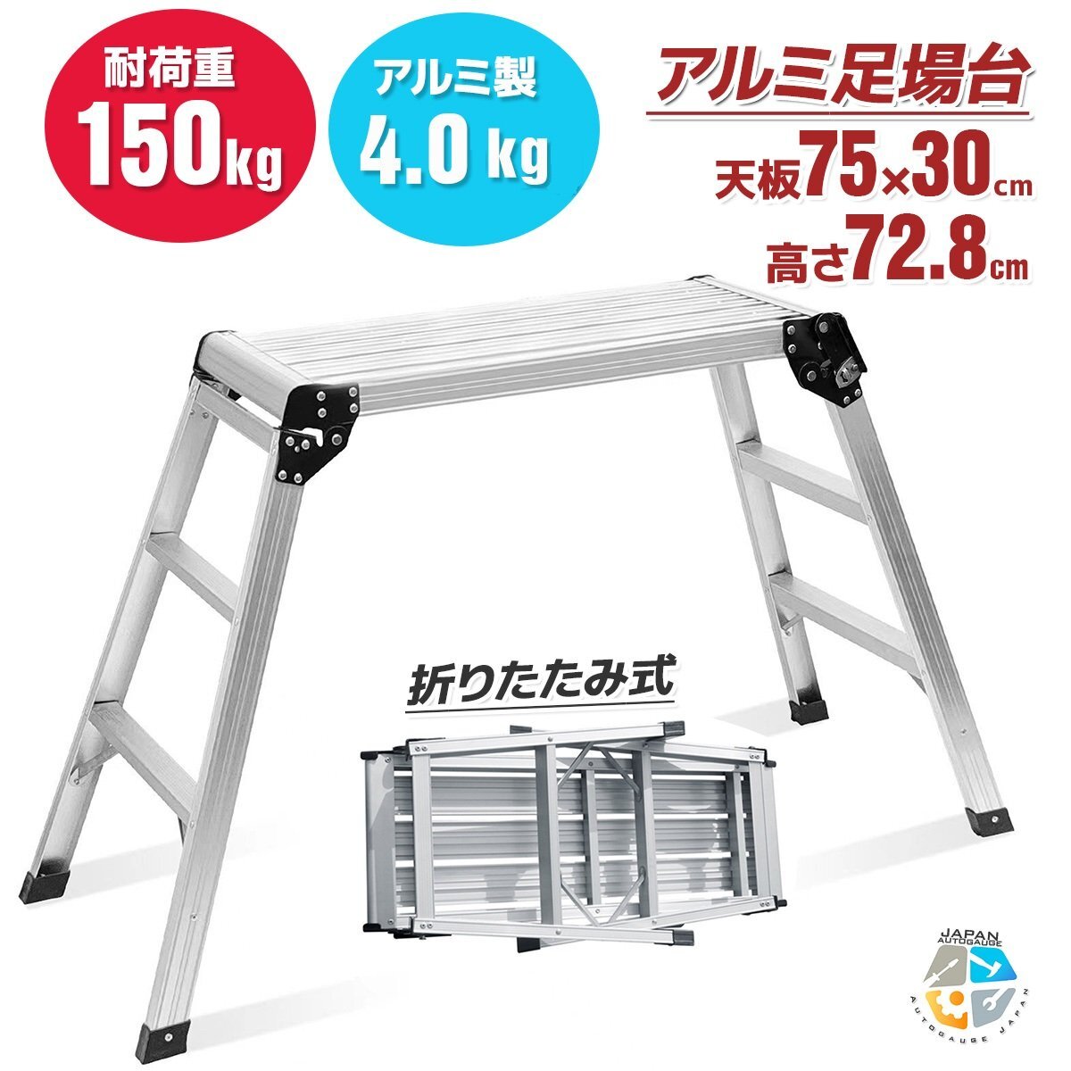> アルミ製 折りたたみ式 踏み台 3段 ステップ はしご 作業台 ステップ台 脚立 足場 洗車 耐荷重150KG / ワンタッチ ロック