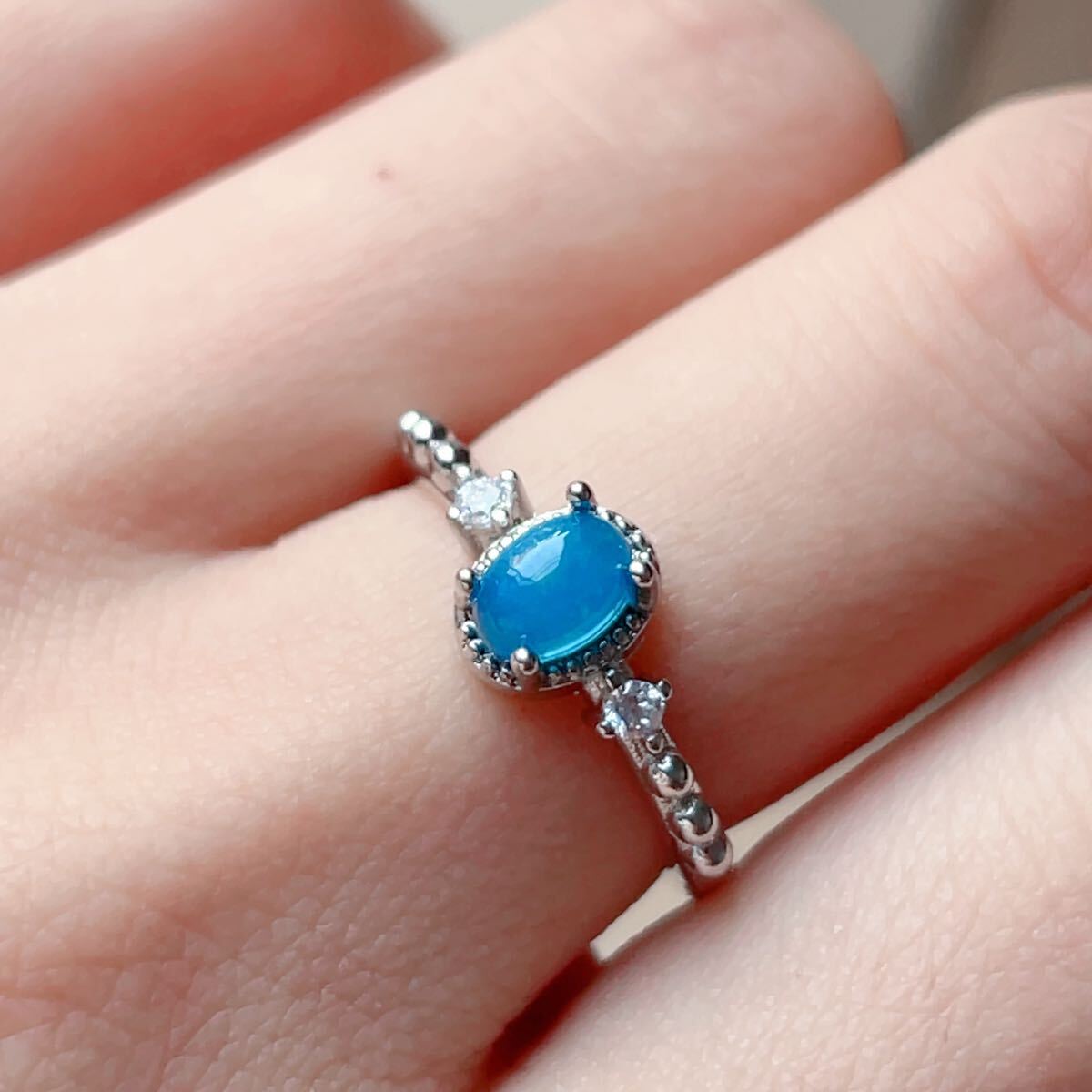 - ◇ブルーオパール◇遊色効果◇フリーサイズ◇リング◇指輪◇パワーストーン◇天然石◇巾着袋付き◇プレゼントにも042R112204