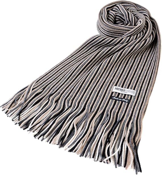 - [ミチコロンドン] イタリア製 ブランドマフラー 男女兼用 ラッセル ストライプ ベージュ系