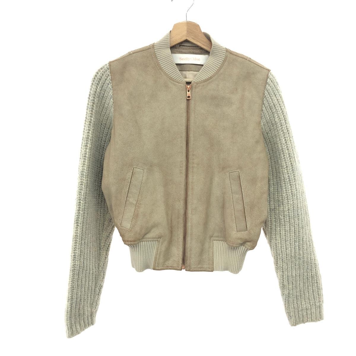 - ◆SEE BY CHLOE シーバイクロエ ニット切替ジャケット サイズ:36 ベージュ レディース