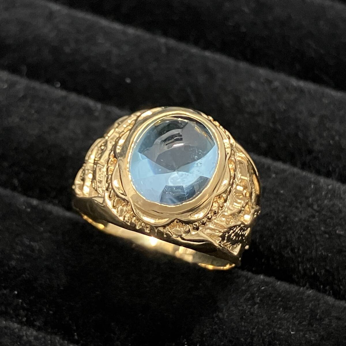 > 鑑別カード付 新品仕上済み 天然ブルートパーズ デザイン リング K18 14.5号 7.8g 金 イエロー ゴールド 指輪